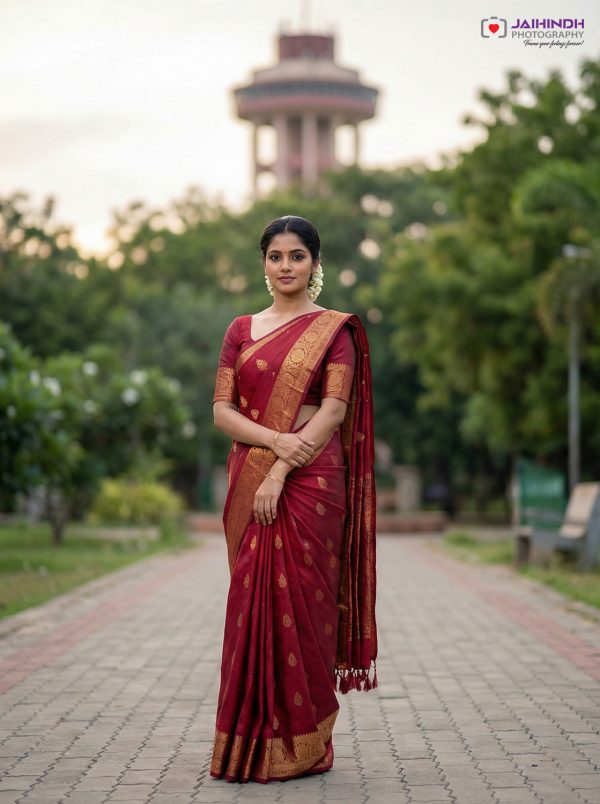Elegant outdoor alliance photoshoot in Chennai with natural light and candid expressions.